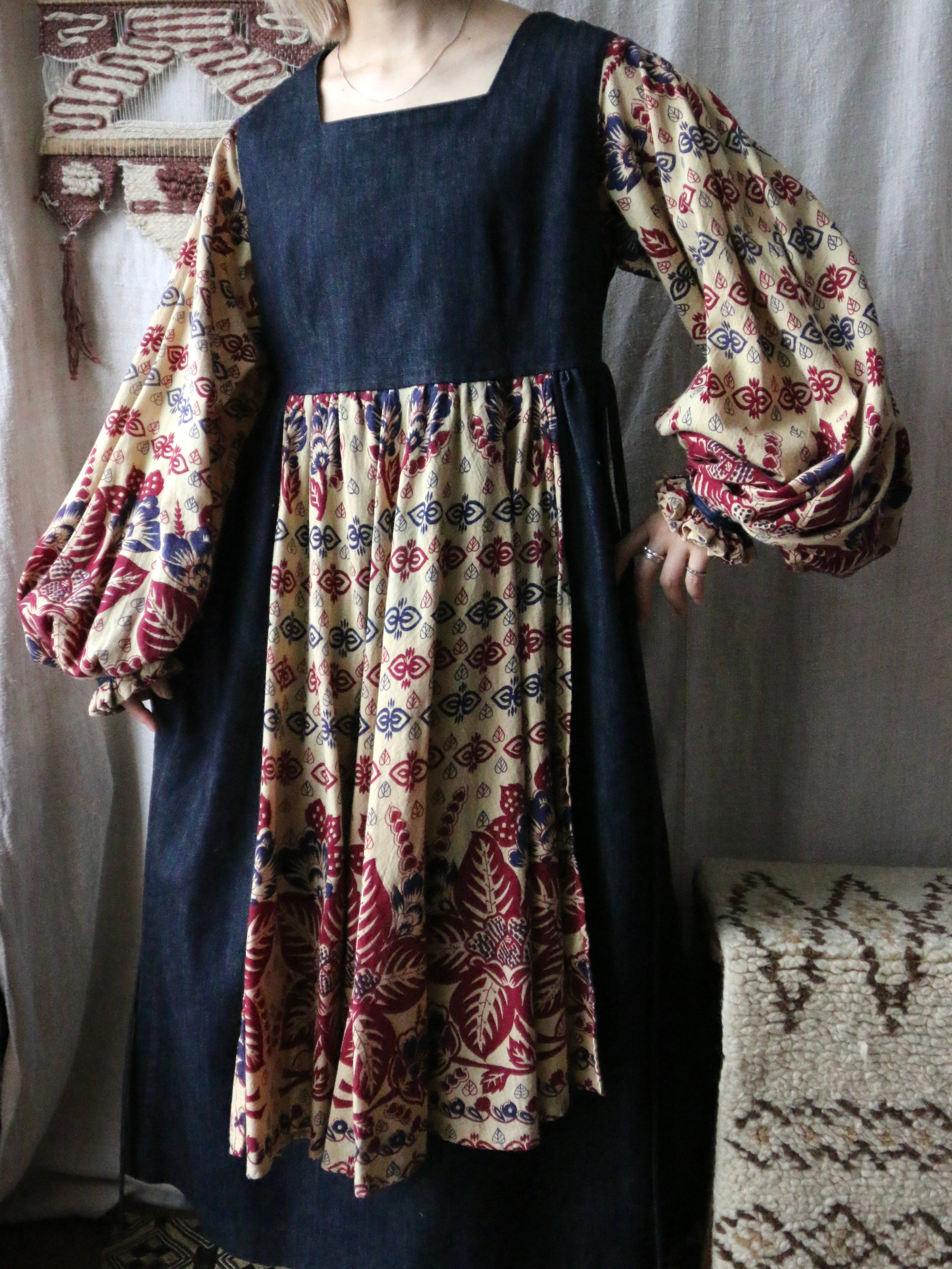 70's USA design denim dress